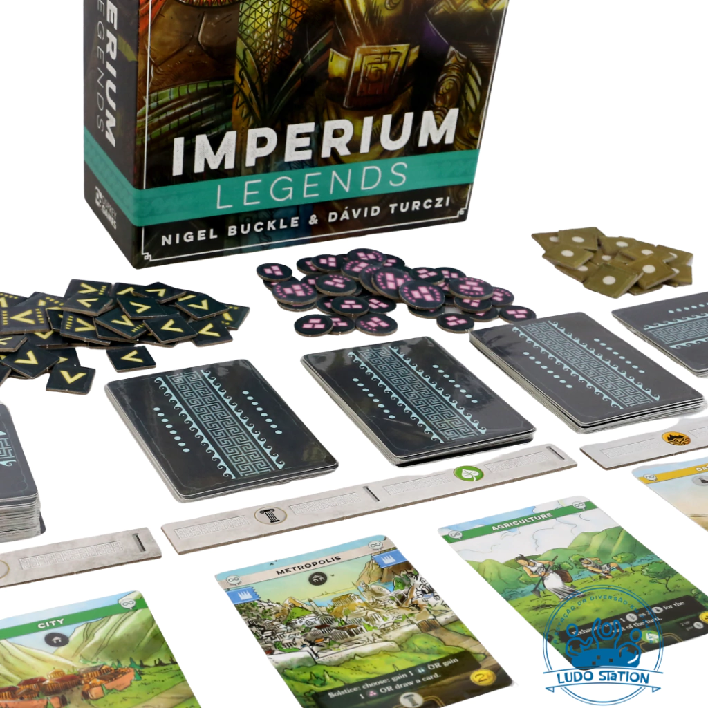 Imperium: Lendas é um jogo independente que traz as três civilizações mais desafiadoras de Imperium – arturianos, utopianos e atlantes – e também egípcios, minoicos, olmecas e as dinastias Máuria e Qin. Cada uma delas se transforma num oponente sem igual numa partida solo. É absolutamente compatível com Imperium: Clássicos, caso você queira expandir ainda mais seu leque de civilizações.