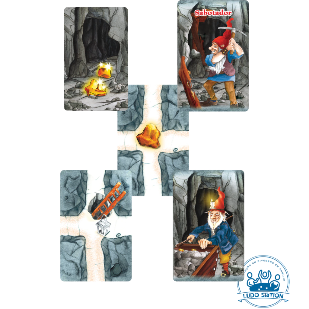 Em Saboteur os jogadores são anões mineradores, procurando ouro no labirinto de túneis em uma mina. Mas cuidado! Alguns dos anões são sabotadores tentando frustrar seus esforços e roubar todo o seu suado ouro. Continue escavando, mas desconfie de todos!